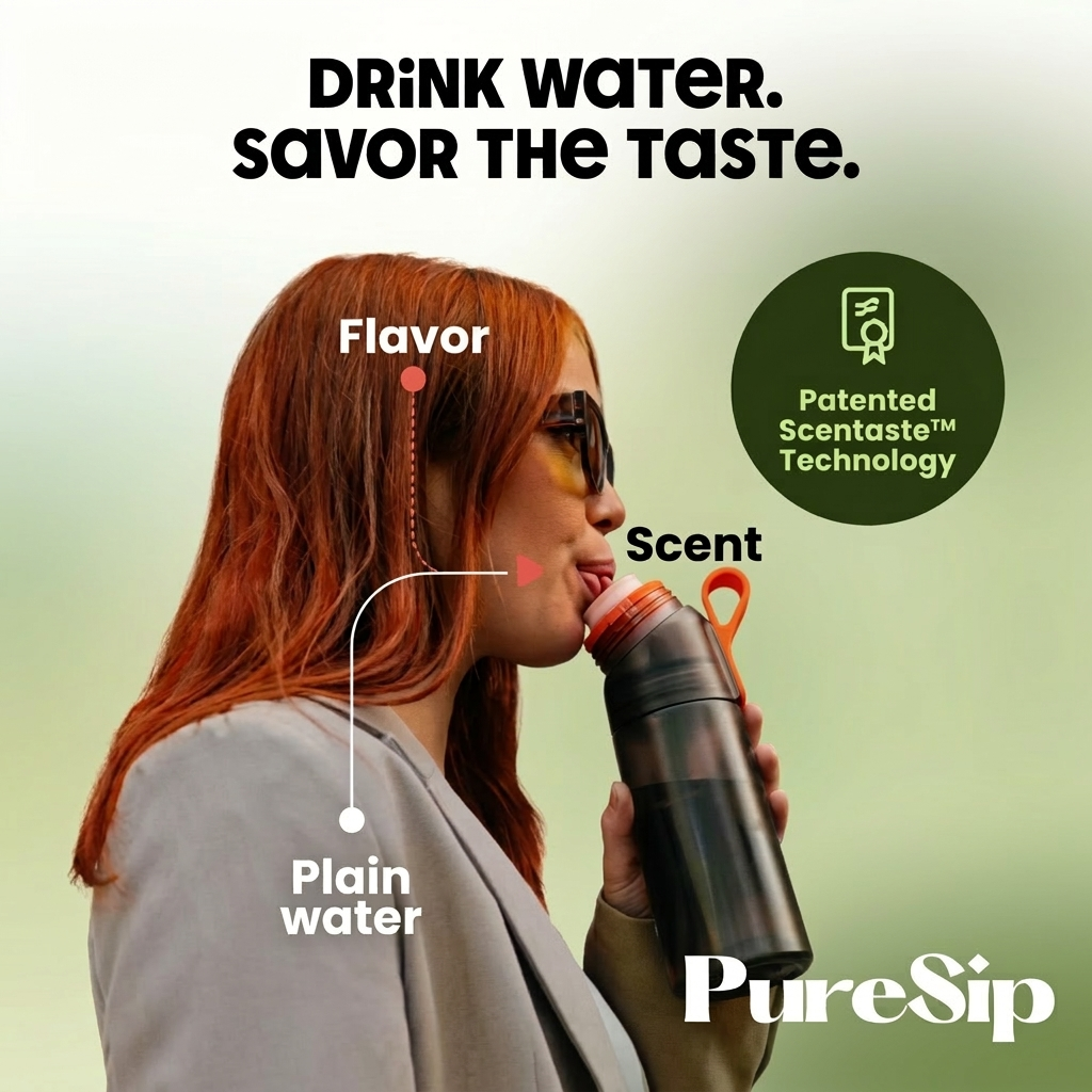 PureSip Scented Flavour Water Bottle 750ml (Purple Powder) & 3 Scented Pods